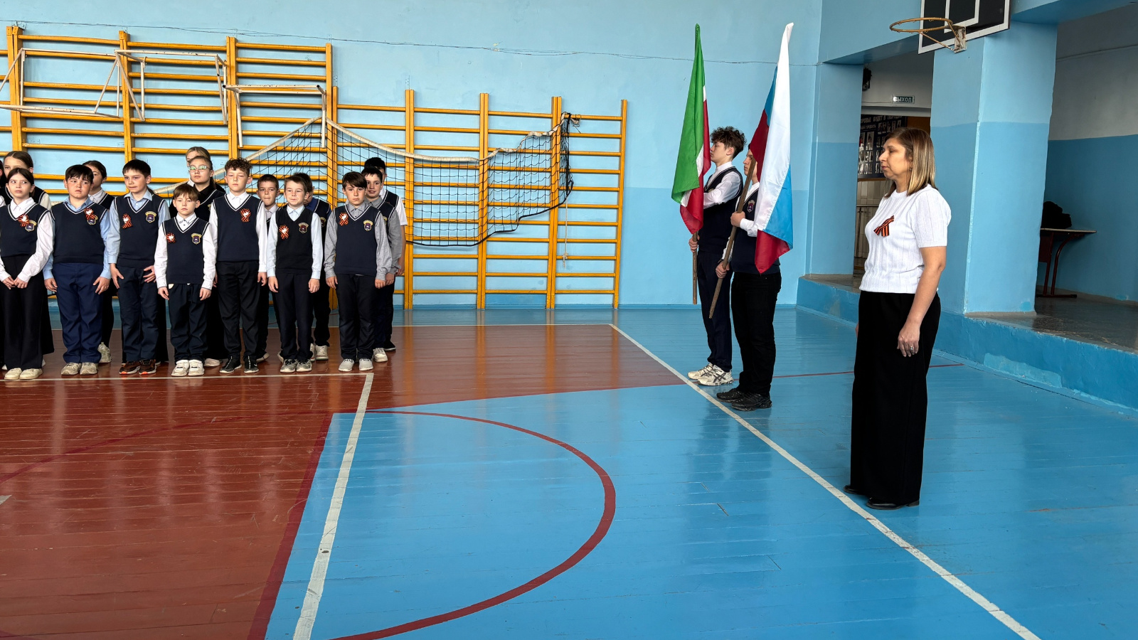 •С приветственным словом выступили заместитель директора по воспитательной работе Галиева Л. А. , советник директора по воспитанию Салахова Э. М. Они подвели итоги прошлой недели и рассказали о планах на предстоящую неделю.