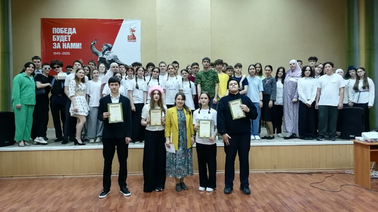 23 апреля в МБОУ «Джалильская гимназия» в рамках празднования Года защитника Отечества состоялся яркий и весёлый конкурс — школьный КВН! Прошёл он среди учащиеся 8-10 классов. Ребята показали себя настоящими артистами и остроумными юмористами! Каждый класс подготовил оригинальное приветствие, сценические выступления и музыкальное домашнее задание. Все продемонстрировали своё умение шутить и импровизировать, поднимая настроение себе и зрителям. Веселье царило повсюду, зрители поддерживали команды громкими аплодисментами и смехом. Поздравляем всех участников с прекрасным выступлением и желаем дальнейших творческих успехов!