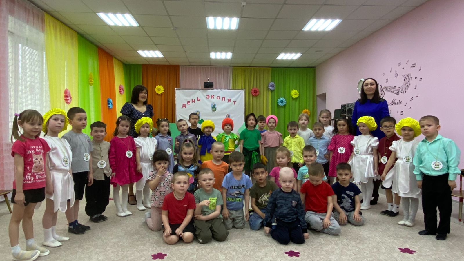 В конце состоялось торжественное посвящение детей, где ребята торжественно и гордо произнесли клятву, исполнили гимн «Эколят» и им вручили значки – юных защитников природы.