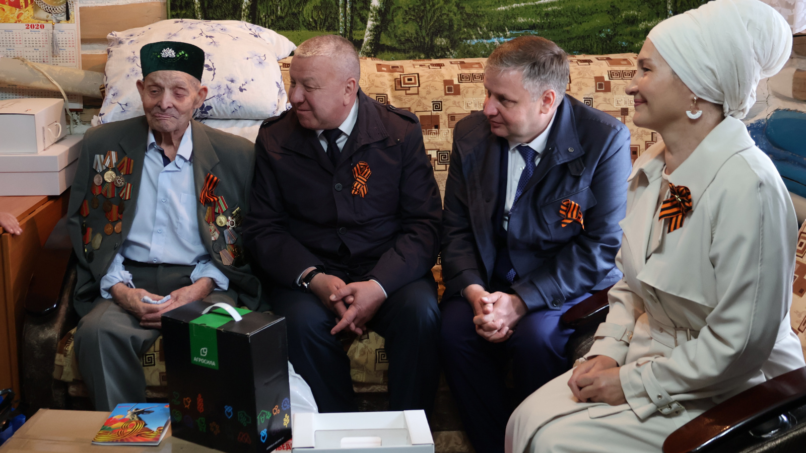 Глава Сармановского муниципального района Фарит Мунавирович Хуснуллин вместе с заместителем начальника Управления Судебного департамента в Республике Татарстан Рамилем Миргаязовичем Рамазановым посетили 100-летнего ветерана-участника Великой Отечественной войны, Почетного гражданина Сармановского муниципального района Шарифзяна Ахметзянова, поздравили с Днем Победы и вручили памятные подарки.