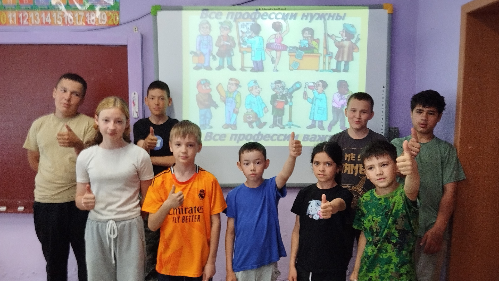 Сегодня в пришкольном лагере «Время Первых!» прошло мероприятие "Все профессии нужны, все профессии важны". Каждый из ребят в творческой форме представил одну профессию, остальные узнавали профессии по описанию, объясняли смысл пословиц и поговорок, связанных с трудом. В конце мероприятия сделали важный вывод: действительно, все профессии важны и нужны.