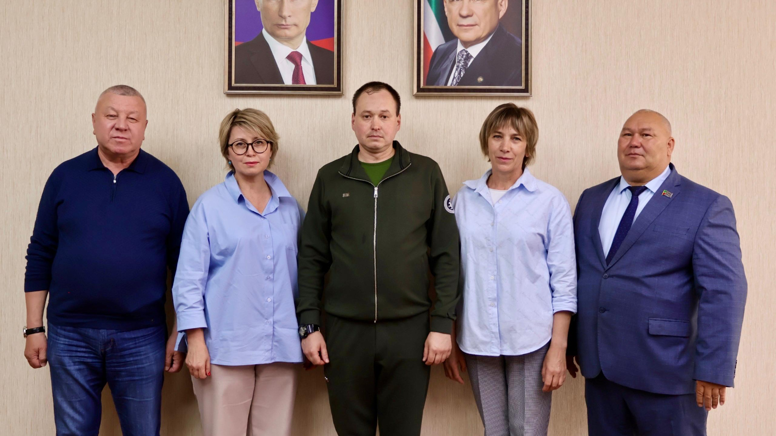 Сегодня Глава Сармановского муниципального района Фарит Мунавирович Хуснуллин встретился с нашим земляком – участником специальной военной операции Ильваром Ильясовым. Он передал ценный экспонат для музея Великой Отечественной войны и краеведения, а также вручил грамоты руководителю аппарата Совета Юлии Равилевне Исмагиловой и первому заместителю руководителя Исполнительного комитета Розалии Раифовне Хуснмардановой за всестороннюю поддержку военнослужащим, участвующим в специальной военной операции.