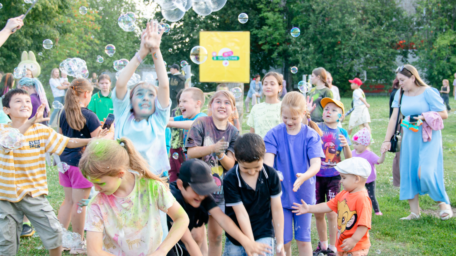 На празднике собралось много детей, молодежи, людей старшего поколения. Для жителей подготовили концертную программу, мастер-классы, детские игры, батуты.