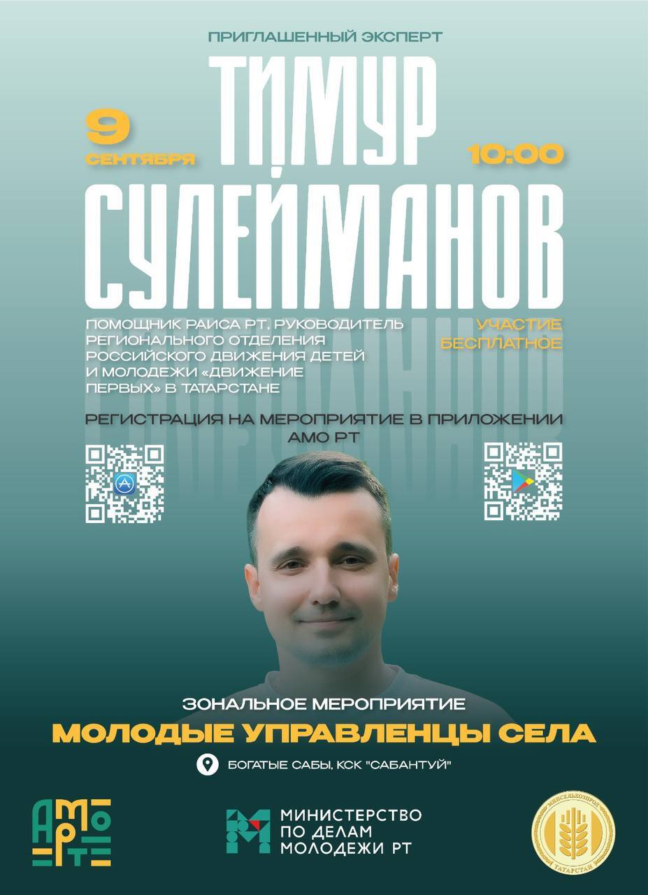 Регистрация на мероприятия доступна в мобильном приложении АМО РТ (AppStore - clck.ru/3NGCVM, Play Market - clck.ru/3NGCU4).