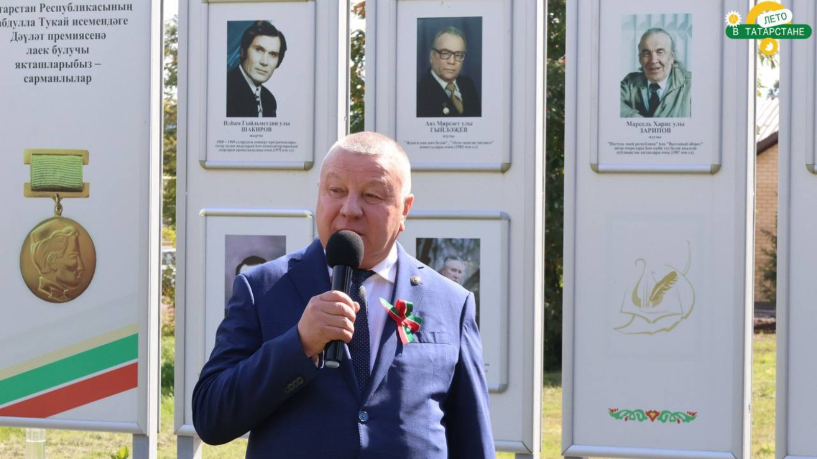 Глава Сармановского муниципального района Фарит Мунавирович Хуснуллин принял участие в торжественном открытии памятной таблички татарскому писателю, драматургу, сценаристу Мансуру Аязовичу Гилязову на стеле лауреатам Государственной премии им. Г.Тукая.