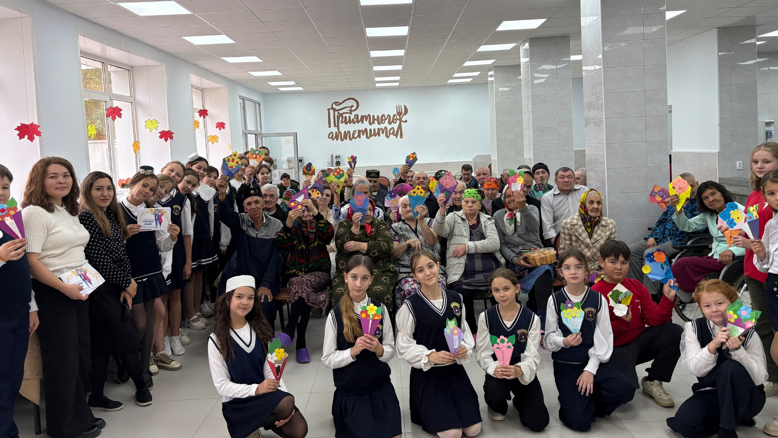 Особый вклад внесли учащиеся младшего звена, которые с большой любовью и старанием подготовили для жителей дома престарелых красивые открытки, сделанные своими руками. Этот искренний жест заботы и внимания вызвал искреннюю радость, улыбки и благодарность у пожилых людей.