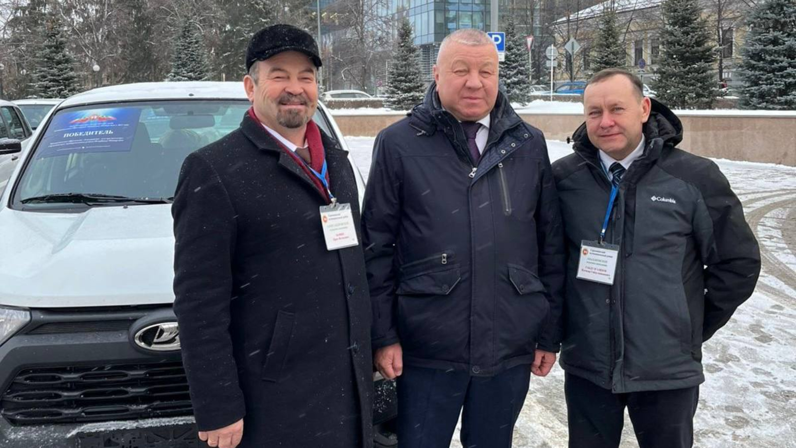 Раис Республики Татарстан Рустам Нургалиевич Минниханов вручил ключи от легковых автомобилей победителям конкурса - главе Александровского сельского поселения Иреку Фатыховичу Вафину и главе Азалаковского сельского поселения Илгизару Габдулкаюмовичу Габдулгазизову.