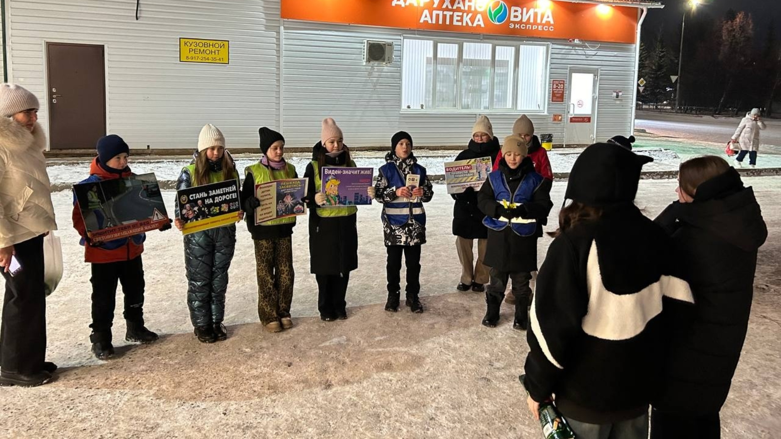 В рамках акции юные инспекторы организовали для жителей посёлка Джалиль мероприятие «Засветись!». 🌟 Ребята напоминали пешеходам о том, как важно быть заметными на дороге в тёмное время суток, и рассказывали о правилах безопасного поведения на зимних дорогах.