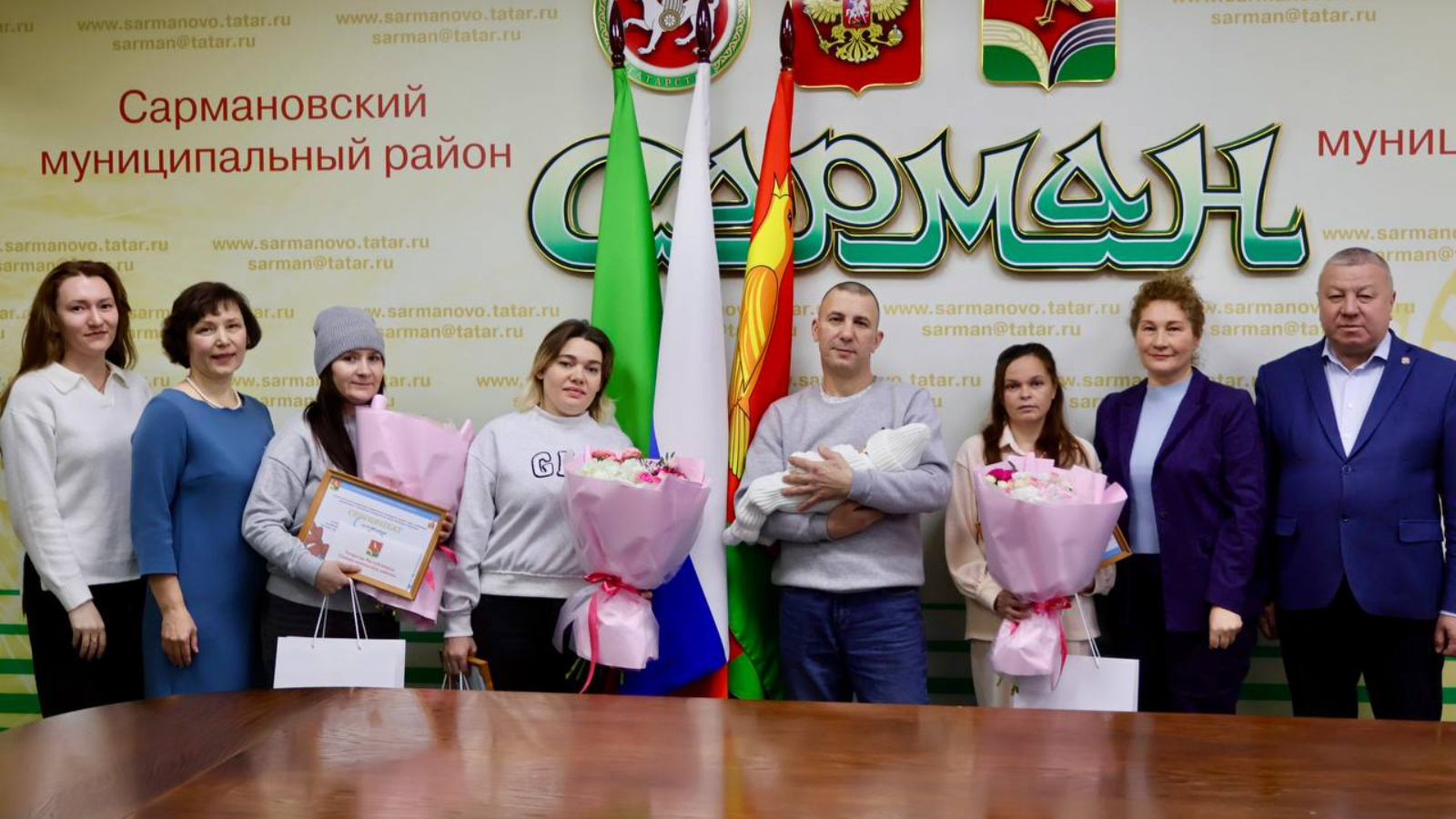 В целях реализации мероприятий, направленных на поддержку молодых семей, повышения рождаемости в районе и в связи с рождением ребенка накануне Нового 2026 года Глава Сармановского муниципального района Фарит Мунавирович Хуснуллин поздравил Вилюзу Рамилевну Замалиеву, Айгуль Миратовну Ахметшину и Алину Александровну Левину. Он также вручил сертификаты, предусмотренные постановлением района о единовременной выплате женщине при рождении ребенка и государственной регистрации его рождения в отделе ЗАГС Исполнительного комитета Сармановского муниципального района. К словам поздравлений присоединились заместитель руководителя Исполнительного комитета, председатель Совета женщин района Индира Раисовна Сахипова, начальник отдела ЗАГС Гульчачак Амирзяновна Валишина.
