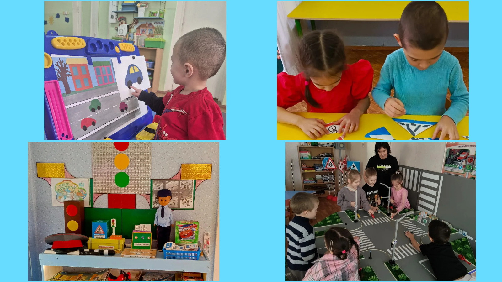 Вместе с детьми уточнили «Правила безопасного перехода через дорогу», закрепили знания о правилах безопасного поведения на дорогах, сигналах светофора. Для изучения правил безопасного поведения на дорогах все способы хороши. Настольные игры занимают особое место в этом процессе – перед детьми ставятся задачи, решение которых требует сосредоточенности, внимания, умственного усилия и последовательности действий. Воспитанники постоянно играют в настольные игры по правилам безопасного поведения на дорогах. Самые любимые: домино «Дорожные знаки», «Лото» «Веселые магнитики», «Светофор». В процессе игры дети познакомились с различными ситуациями и опасностями дорожного движения, закрепляют знания о правильном и безопасном поведении на дороге.