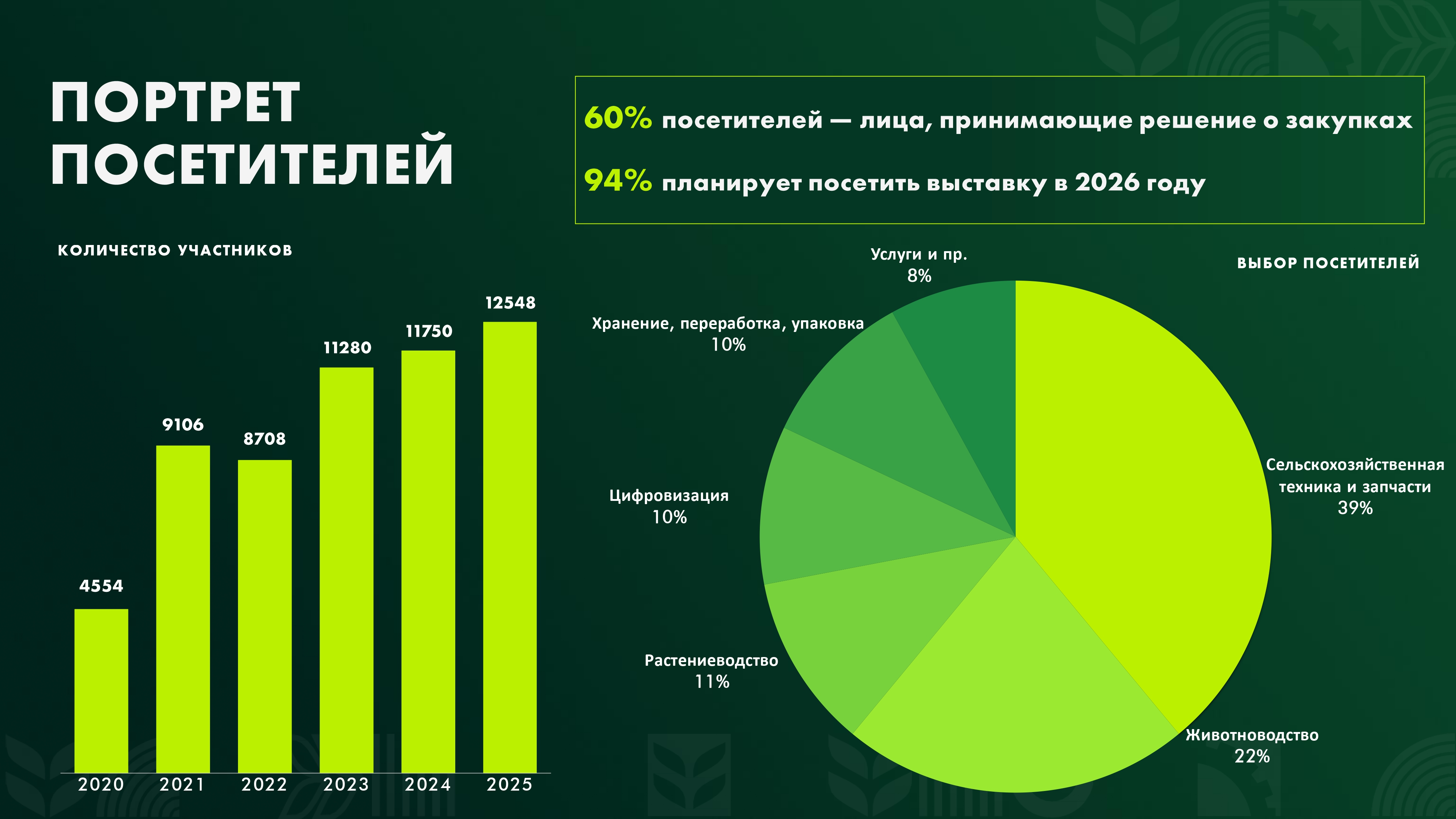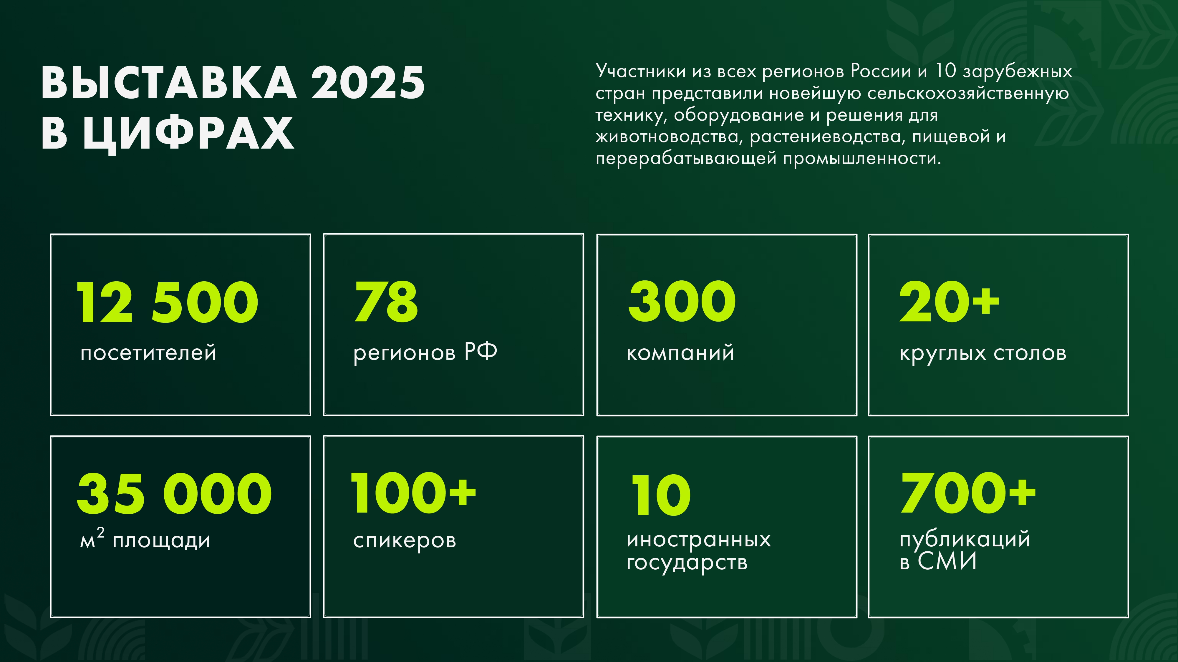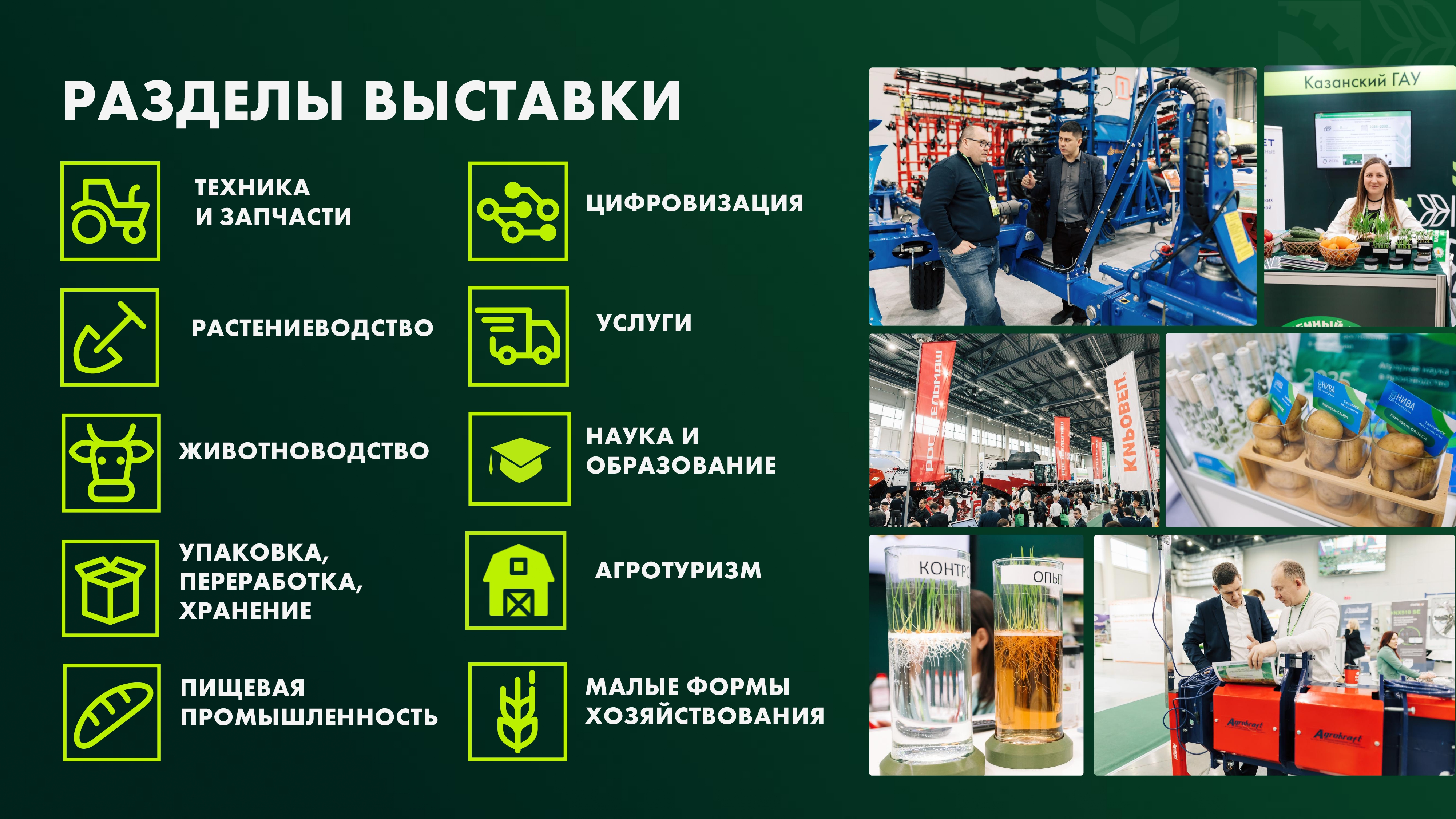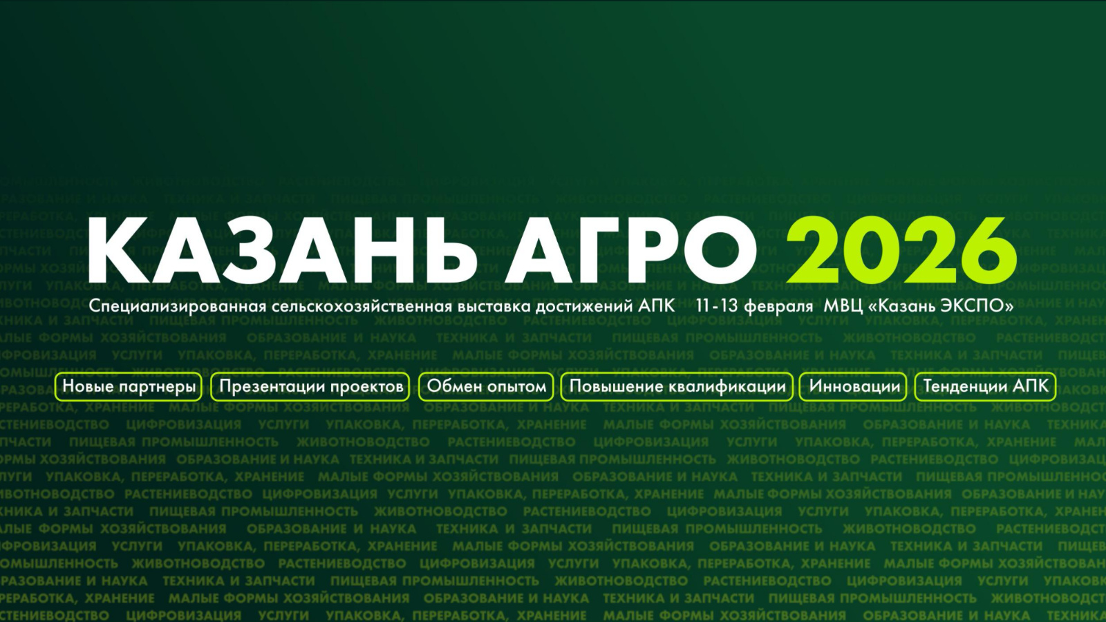С 11 по 13 февраля 2026 года на территории Международного выставочного центра «Казань Экспо» состоится специализированная сельскохозяйственная выставка достижений АПК «Казань Агро – 2026», где примут участие более 300 компаний и 12 500 специалистов АПК со всей России, общая площадь выставочной экспозиции превысит 35 000 кв.м. Мероприятие будет сопровождаться деловой программой, в рамках которой предусмотрены конференции, круглые столы, семинары и мастер-классы, а также будет представлен раздел «Агротуризм», посвящённый развитию сельских территорий.