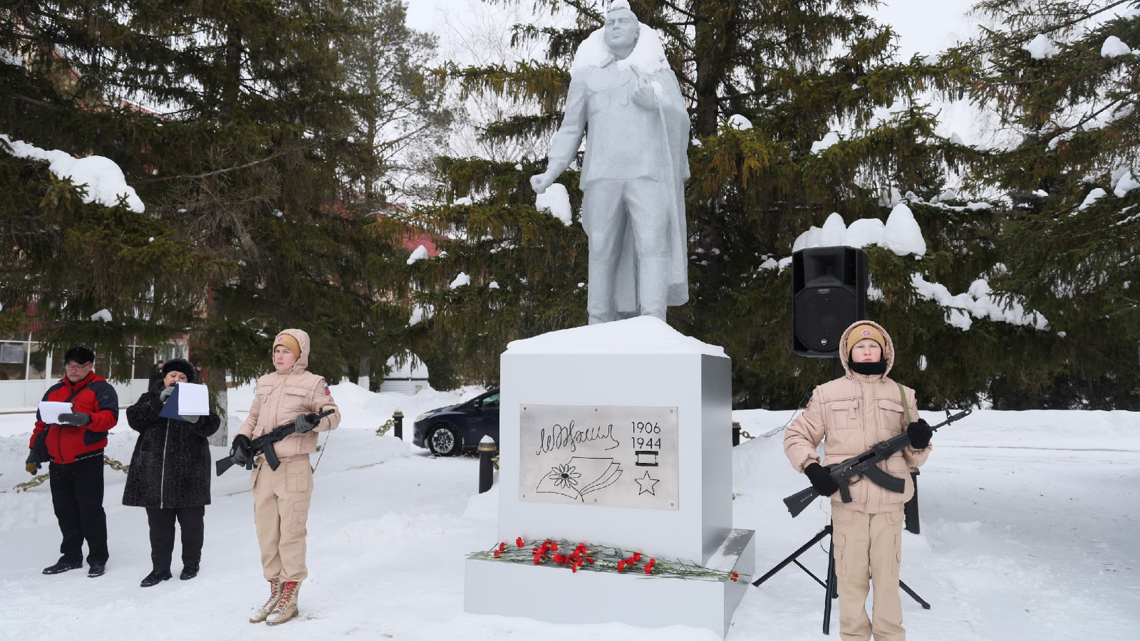 У памятника поэту был выставлен почетный караул. В мероприятии приняли участие руководство района и поселка, нефтяники, преподаватели и школьники, чтобы отдать дань уважения человеку, ставшему символом мужества и преданности Родине.