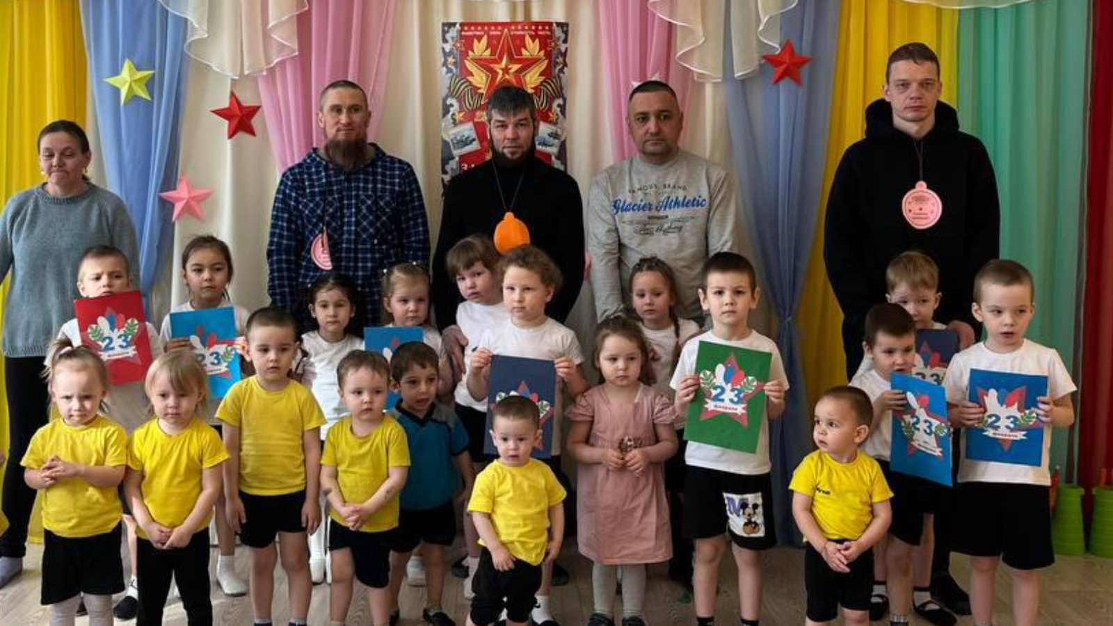 Дети участвовали в музыкально-спортивных развлечениях, пели песни, читали стихи, а также соревновались в эстафетах вместе с папами, проявив смелость и сноровку. Праздник сформировал у ребят чувство гордости за защитников Отечества. 🛩️🇷🇺💫