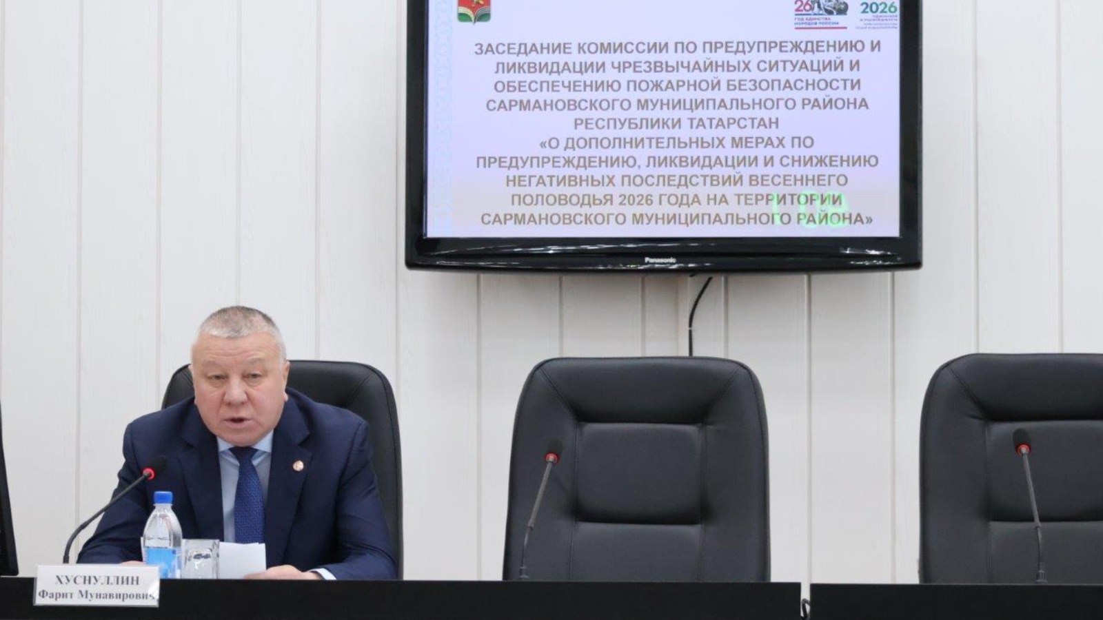Сегодня в зале заседаний Совета состоялось заседание по предупреждению и ликвидации чрезвычайных ситуаций и обеспечению пожарной безопасности Сармановского муниципального района Республики Татарстан «О дополнительных мерах по предупреждению, ликвидации и снижению негативных последствий весеннего половодья 2026 года на территории Сармановского муниципального района». Заседание вел Глава Сармановского муниципального района Фарит Мунавирович Хуснуллин.
