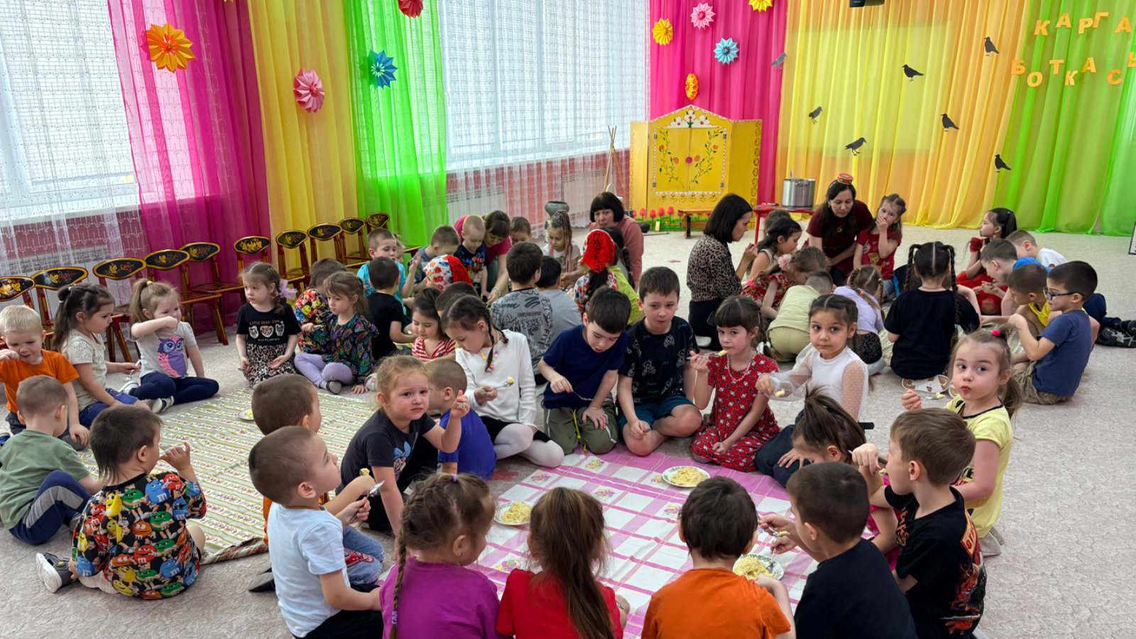 «Карга боткасы» является одним из самых популярных весенних праздников у башкирского и татарского народа. В целях возрождения культурного наследия и народных праздничных обычаев этот фольклорный праздник «Карга боткасы» ежегодно традиционно проводится в «Красной шапочке». В подготовке и проведении участвуют все сотрудники и воспитанники детского сада. Подготовительные и старшие группы готовят музыкальные номера, разучивают национальные игры, хороводы. Детям очень нравится этот праздник, ведь проводится много интересных игр: «Пронеси яйцо в ложке», «Разбивание горшка», «Кто быстрее принесет воду в ведрах с коромыслом» и другие. В конце праздника и каша поспевает! Она всегда получается на славу, а после подвижных игр и аппетит у детей отменный. Как и положено, порции каши оставляют для земли, воды и неба. Добрая половина каши достается грачам. Праздник «Карга боткасы» играет мощную консолидирующую и воспитательную роль. Интеграция данного обряда в социокультурную среду не только возрождает живые традиции, но и способствует объединению детей и показывает преемственность поколений.