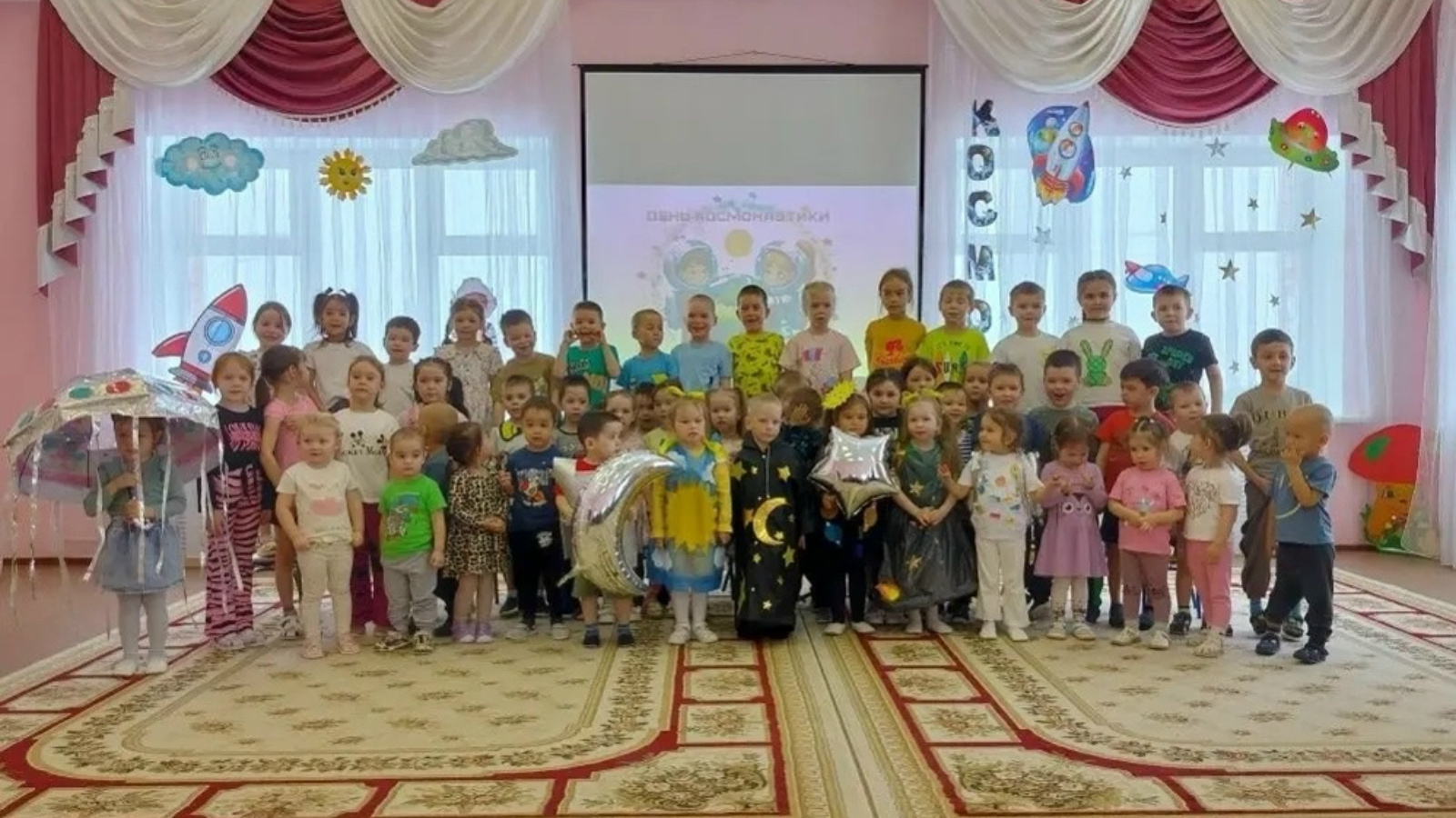 В нашей стране 12 апреля отмечается Всероссийский День космонавтики. Наш детский сад тоже не остался в стороне и провёл по этому случаю весёлое мероприятие под названием «В космическом пространстве». Ребята закрепили знания о космосе, орбите, кометах, звёздах и планетах, а также о первом космонавте и его экипировке. Особенно понравились детям и взрослым такие конкурсы, как «Построим ракету» из гимнастических палочек и обручей, «Собери космический мусор», где нужно было собирать предметы снежколепом, и «Космический пазл». Не обошлось и без подвижных игр: ребята с азартом участвовали в игре «Космос» и демонстрировали свои «Космические костюмы» на дефиле. Это мероприятие подарило детям много бодрости, радости и позитивных эмоций на весь день.