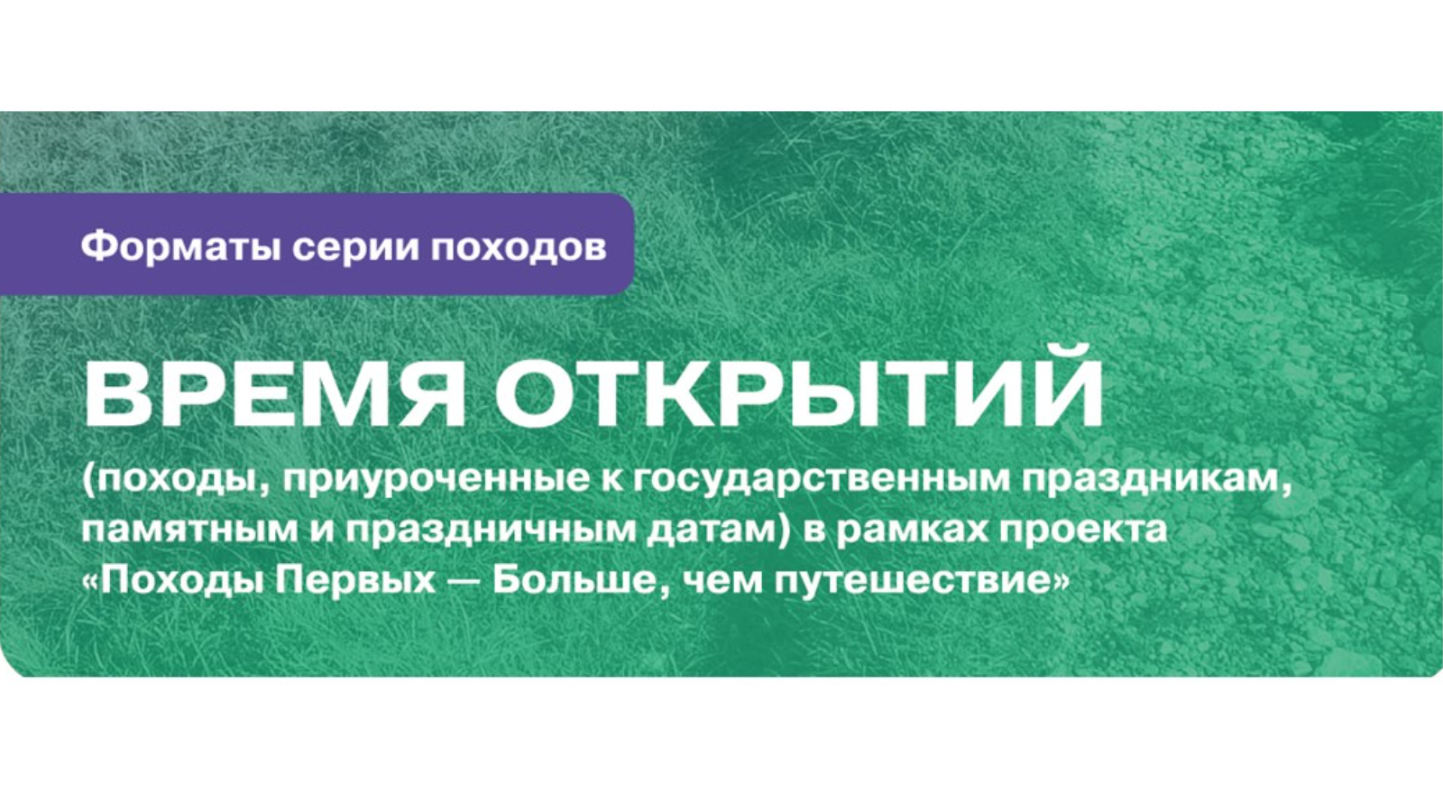 В рамках указанного проекта запланирована серия походов «Время открытий» (походы, приуроченные к государственным праздникам, памятным и праздничным датам) (далее – Специальный проект), включающая в себя 11 общероссийских походов в формате дней единых действий, направленных на развитие и популяризацию массового походного туризма среди детей и молодежи как инструмента патриотического воспитания, формирования культуры и привычки путешествовать по стране.