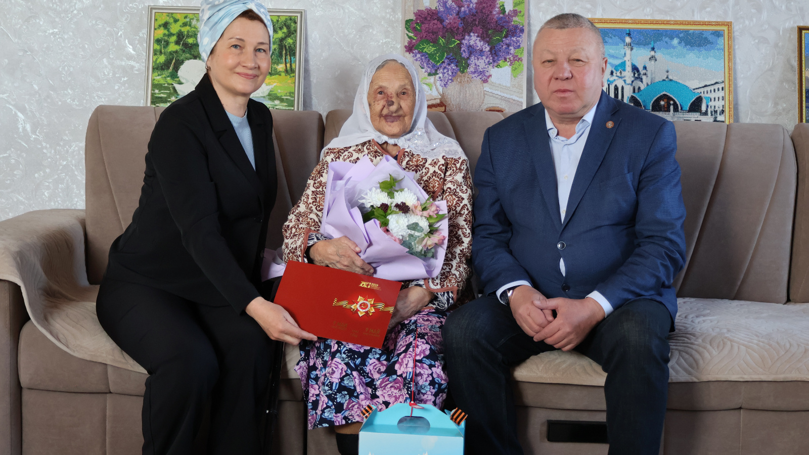В преддвери Дня Победы Глава Сармановского муниципального района Фарит Мунавирович Хуснуллин, заместитель руководителя Исполнительного комитета по социальным вопросам Индира Раисовна Сахипова вручили ветеранам тыла продоволственные пакеты Раиса Республики Татарстан Рустама Нургалиевича Минниханова к 81-летию Победы в Великой Отечественной войне.