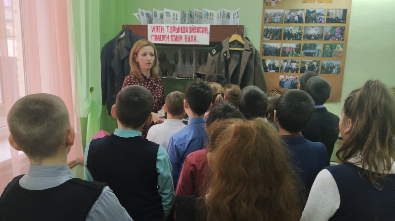 Бүген 5В сыйныфы укучылары музейда булган сугыш экспонатлары белән таныштылар,кызыклы мәгълүмат алдылар.Бөек Ватан сугышында катнашкан әби-бабаларын барларга сүз бирделәр.Әңгәмәне Хайруллина Эльза Ильдаровна мавыктыргыч һәм нәтиҗәле итеп уткәрде.\