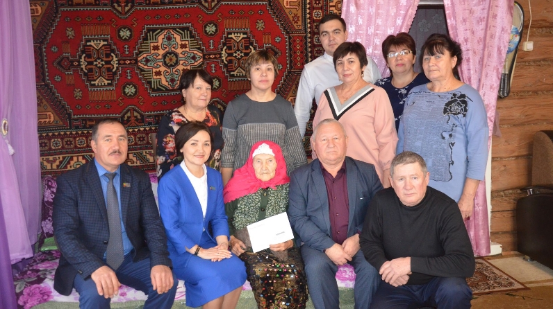 Юбилярны гомер бәйрәме белән район башлыгы урынбасары Гүзәл Гәрәева тәбрикләде.Ул ветеранга Рәсәй Президенты Владимир Путинның Котлау открыткасын һәм район башлыгы Фәрит Хөснуллин исеменнән истәлек бүләге тапшырды. Район ветераннар советы рәисе Нәҗип Миңнеголов, район социаль яклау бүлеге белгече Рәүфә Фәррахова, “Шәфкать” үзәге директоры урынбасары Фәридә Рәхимова, авыл җирлеге башлыгы Данияр Газизов, авыл ветераннар советы рәисе Хәмит Рамазанов, балалары, оныклары тәбрикләделәр, изге теләкләрен җиткерделәр.