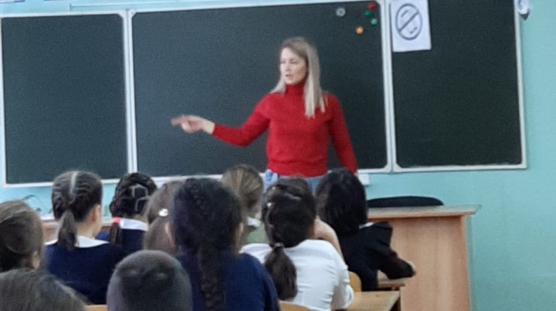 Мәктәптә журналистлар еш булмый. Тележурналистлар - тагын да сирәгрәк кунак. Безнең мәктәп ул яктан бик бәхетле. Мәктәбебезнең элеккеге укучысы, искиткеч нәфис, гүзәл һәм аралашучан Альбина Асылгараева нәкъ менә шундый һөнәрне сайлаган кеше. 9 декабрь көнне (үзенең туган көнендә) ул безнең мәктәптә булды! Кабинетка килеп керүгә үк ул тиз арада бөтен аудиториянең игътибарын үзенә җәлеп итте. Дүртенчеләр Альбина апаларыннан күзләрен дә алмадылар. Чын диктор менә шундый була шул ул. Вакыт, гадәттәгечә, җитмәде. Ләкин кунагыбыз әле тагын кайтырга, балалар белән очрашырга вәгъдә бирде. Монысы укучыларга бик ошады.