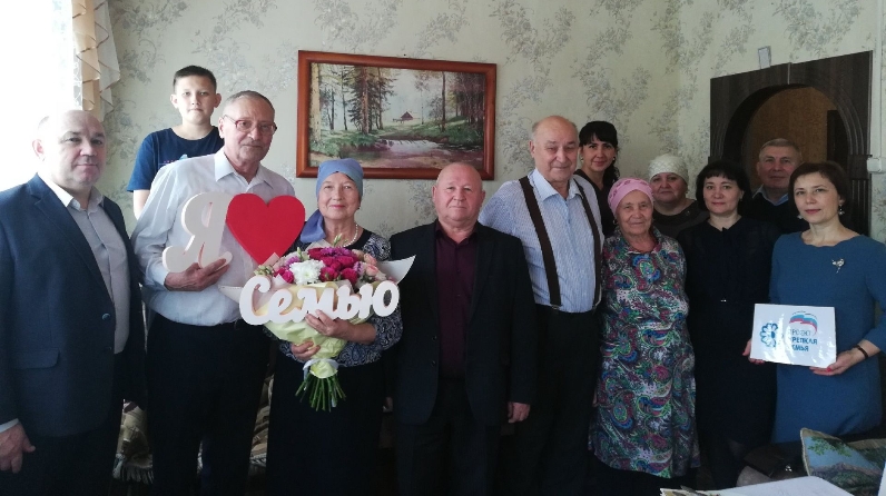 Гаиләне алтын юбилейлары белән район Советы аппараты җитәкчесе Фәндәс Вәлиев, район ветераннар советы рәисе Нәҗип Миңнеголов, район Башкарма комитетының гражданлык хәле актларын теркәү бүлеге начальнигы Гөлчәчәк Вәлишина, балалары, кода-кодагыйлары, туганнары тәбрикләделәр. Фәндәс Әнәсәвич район башлыгы Фәрит Хөснуллинның Рәхмәт хатын, изге теләкләр белән, истәлек бүләге тапшырды.