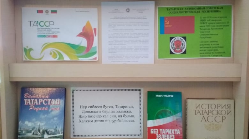 “ ТАССРга 100 ел ” дигән китап күргәзмәсе эшләнде. Аның аша укучылар республикабызның тарихын киң яктырткан китаплар белән таныша алалар.