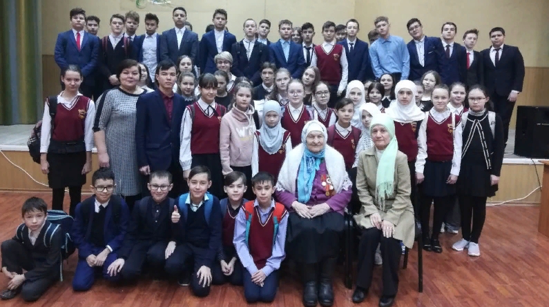 15 нче январь көнне гимназиябездә хезмәт һәм тыл ветераны Сөләйманова Гәүһәр Нәбиулла кызы белән очрашу булды. Ул үзенең бала чагын, сугыш вакытындагы авыр тормышны, халыкның ачлы-туклы яшәвенә карамастан, бердәм, ярдәмчел булуы турында сөйләде, үзенең киңәшләрен бирде. Хәзерге буынның бик рәхәттә яшәвен һәм шушы яхшы тормышның кадерен бик үк белеп бетермәвебез турында да кисәтте. Укучыларыбыз Гәүһәр апаның һәр сүзен, һәр җөмләсен йотлыгып тыңладылар, кат-кат үзләренең рәхмәтләрен җиткерделәр.