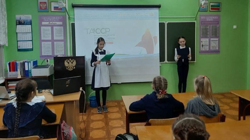 20 нче гыйнварда мәктәбебезнең барлык сыйныфларында ТАССРның 100 еллыгы һәм Татарстан Республикасының беренче президенты М.Ш.Шәймиевка багышланган сыйныф сәгатьләре үткәрелде. Аларның төп максаты булып укучыларны ТАССРның оешу тарихы, аның данлы үткәне белән таныштыру аша, тарихка һәм күренекле шәхесләребезгә хөрмәт тәрбияләү, кызыксыну һәм горурлык хисләре уяту тора. Үткәнен белмәгән халыкның киләчәге юк, диләр. Димәк,тарихны өйрәнү - киләчәккә нигез салу ул.