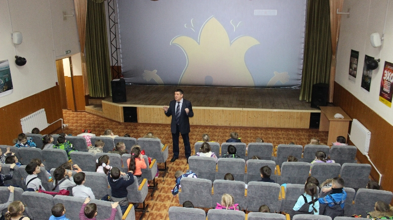 Шулай ук кинотеатрга «Лэйсэн», «Лилия», «Кояшкай» балалар бакчалары нэнилэре чакырылды. Киноучреждение директоры Р.Шэрэфетдинов балаларны быелгы ел Татарстаннын 100 еллыгы елы дип игълан ителуе турында бэян итте. Хэм балаларга