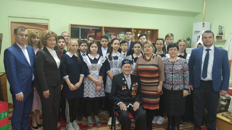 9нчы б сыйныф укучылары сугыш ветераны Файзрахманов Мөхәррам абыйның сугыш истәлекләрен тыңлап үттеләр. Очрашуда мәртәбәле кунаклар да катнашты- Башкарма комитеты җитәкчесе урынбасары Сәхипова Индира Рәис кызы укучыларга нәсихатләрен һәм теләкләрен җиткерде. Очрашу кызыклы һәм гыйбрәтле булды.