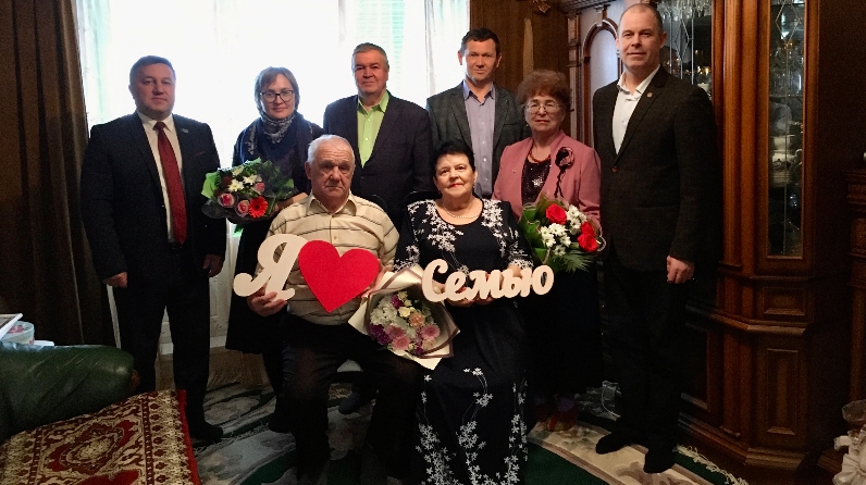 Сарман муниципаль районы башлыгы Ф.М. Хөснуллин исеменнән һәм «Җәлил шәһәр тибындагы поселок» муниципаль берәмлеге башлыгы Р. Ә. Кәримов үз исеменнән котлау адреслары һәм истәлекле бүләкләр тапшырды. Аларга ныклы сәламәтлек, бәхет, игелек теләде. Безнең бистә ныклы, тату гаиләләр белән дан тота, дип билгеләп үтте. Мондый гаиләләр - алтын фонд, безнең поселогыбызның һәм районыбызның горурлыгы.