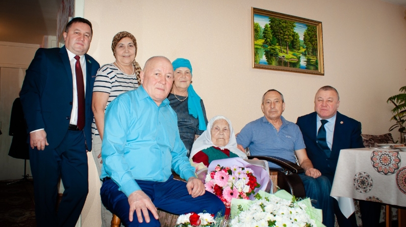 Гамбәрия Шәймөхәммәт кызына РФ Президенты Владимир Путин исеменнән котлау хаты һәм истәлекле бүләкләр тапшырылды.
