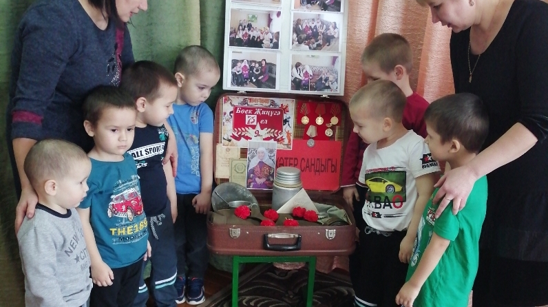 Иске Имән балалар бакчасында да Бөек Җиңүнең 75 еллыгына багышлап почмак ясап куйдык. Легендар Бөек Ватан сугышы ветераныбыз -101 яшьлек Шакирова Мияссәрә Шакир кызына багышлап “Хәтер сандыгы” тутырылды. Балаларны аның эчтәлеге белән таныштырдык. Үзләренә кызыклы булган экспонатларны, медальләрне тотып карадылар.