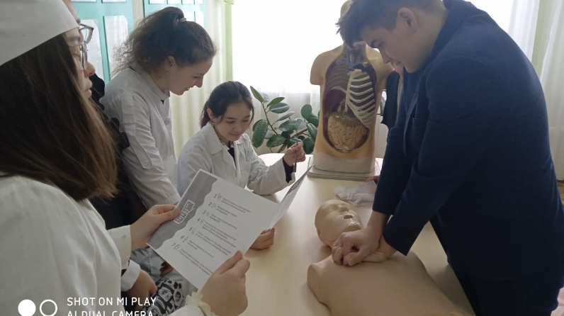 «Волонтер - медиклар» отряды укучылары дәресне ике форматта үткәрделәр. Алар беренче ярдәмнең теоретик нигезләрен аңлаттылар. Соңыннан белемнәрен практикада ныгыттылар. Укучылар өчен мастер-класс урта һәм өлкән сыйныф укучыларында медицина грамоталылыгын арттыру максатыннан оештырылды.