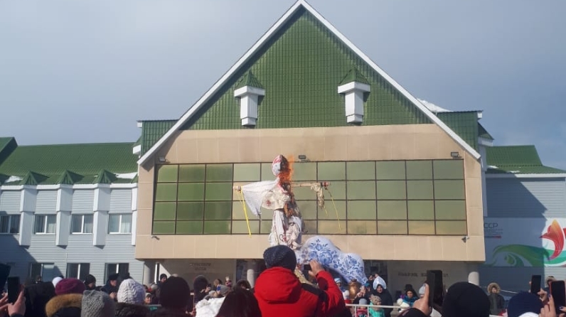 "Русская масленица" традицион чучеланы яндыру һәм әйлән-бәйлән белән тәмамланды.