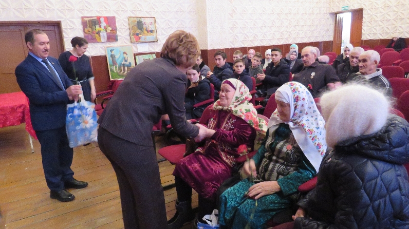 - Сез сугыш кырларында һәм тылда батырлык үрнәкләре күрсәттегез, фидакарь хезмәтегез белән Бөек Җиңүне якынайттыгыз. Сез бүген дә – сафта, яшьләргә матур үрнәк күрсәтәсез, аларны батырлык, туган илгә бирелгәнлек рухында тәрбияләүдә үзегездән зур өлеш кертәсез, - диде район башкарма комитеты урынбасары , ветераннарны быелгы истәлекле даталар – якынлашып килүче Бөек Җиңү һәм ТАССРның 100 еллыгы белән тәбрикләп, һәм ветераннарның күкрәкләренә медальләр кадады.һәм бәйрәм күчтәнәчләретапшырды.