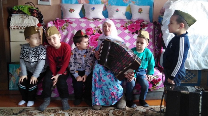 Иске Имән балалар бакчасыда да Бөек Җиңүнең 75 еллыгына багышлап төрле күргәзмәләр,чаралар булып тора.Шул максаттан балалар белән Бөек Ватан сугышының тыл ветераны, авылыбызның сандугачы Гайнемова Фатыйма Хәлиулла кызында кунакта булдык. Фатыйма әби безне үзенең “җан дусты” –гармуны белән каршы алды. Олы яшьтә булуына карамастан бик матур уйнап җырлый. Балалар ветеранга үзләренең әзерләп килгән шигырьләрен сөйләделәр, җырларын җырлап күрсәттеләр. Үз куллары белән ясаган бүләкне бирделәр. Фатыйма әби балаларга сугыш хатирәләрен мавыктыргыч,кызыклы итеп сөйләп бирде, үзенең орден -медальләрен күрсәтте.