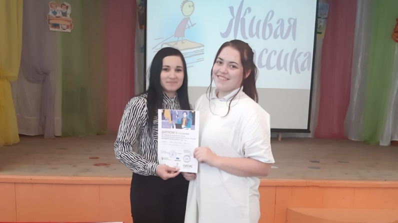 Җәлил беренче мәктәбенең 10 сыйныф укучысы Вәлиәхмәтова Карина "Тере классика" конкурсында икенче урынны яулады һәм республикага район данын якларга бара.