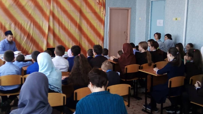 Илексаз төп гомуми белем бирү мәктәбендә чираттагы әхлак дәресе үтте. Аны Илексаз авылы хәзрәте Хуҗин Инсаф үткәрде.