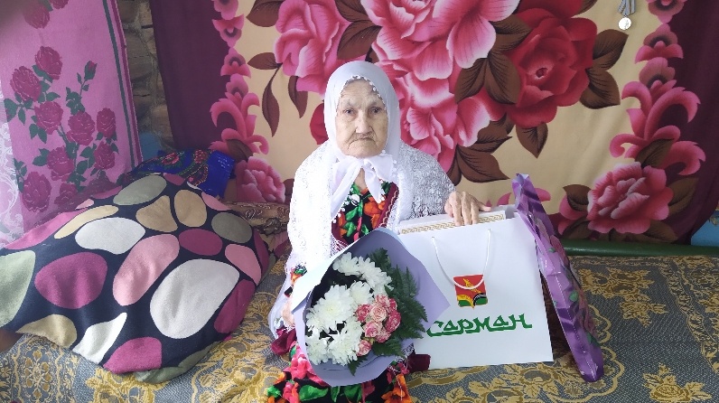 Район башлыгы Хөснуллин Фәрит Мөнәвир улы исеменнән котлау хаты һәм истәлек бүләге, шулай ук авыл җирлеге башлыгы Газизов Данияр Әнвәр улының, ветераннар советы рәисе Рамазанов Хәмит Зәки улының котлау сүзләре, истәлек бүләкләре юбилярның туганнары аша тапшырылды.