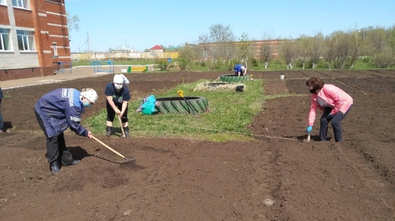 Җылы һава торышы башлану белән мәктәп яны участогында эш башланды. Җәлил гимназиясе укытучылары һәм техперсоналлары бер атна дәвамында эшкә чыктылар: помидор, чөгендер һәм башка яшелчәләр утырттылар.