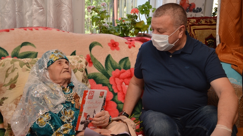 Бүген район башлыгы Фәрит Хөснуллин берничә тыл ветераны белән очрашты һәм аларга бүләкләр һәм истәлекле открыткалар тапшырды.