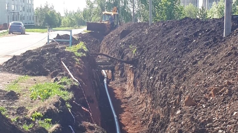 Җәлил поселогының Кол Шәриф урамы буенча урнашкан суүткәргеч челтәрләрне капиталь ремонтлау дәвам итә