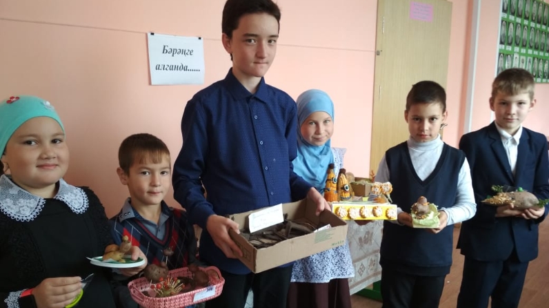 14 сентябрьдән 21 нче сентябрьгә кадәр Әлмәт мәктәбендә табигый материаллардан күргәзмә узды. Эшләнмәләр һәрберсе үзенчәлекле, кызыклы, зәвык белән ясалган иде. Күргәзмәдә җиңүчеләр һәм призерлар мәктәпкүләм линейкада бүләкләнделәр.