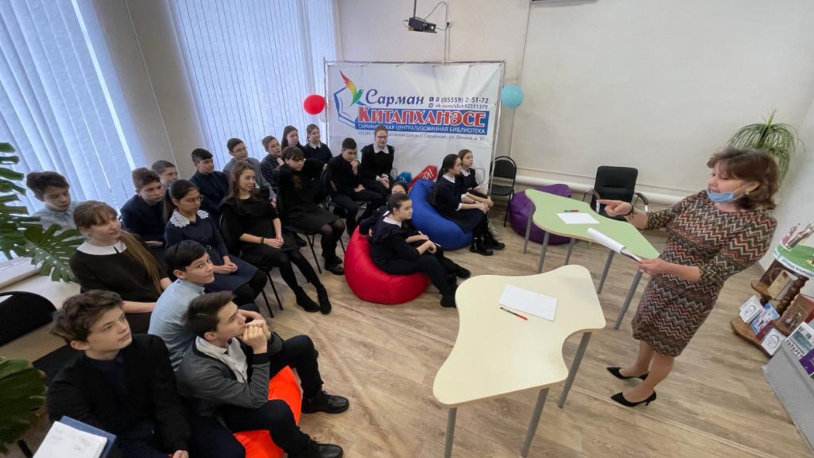Сарман үзәк китапханәсендә Сарман гимназиясенең 8а сыйныф укучылары өчен Туган тел һәм Халык бердәмлеге елына багышланган чара узды