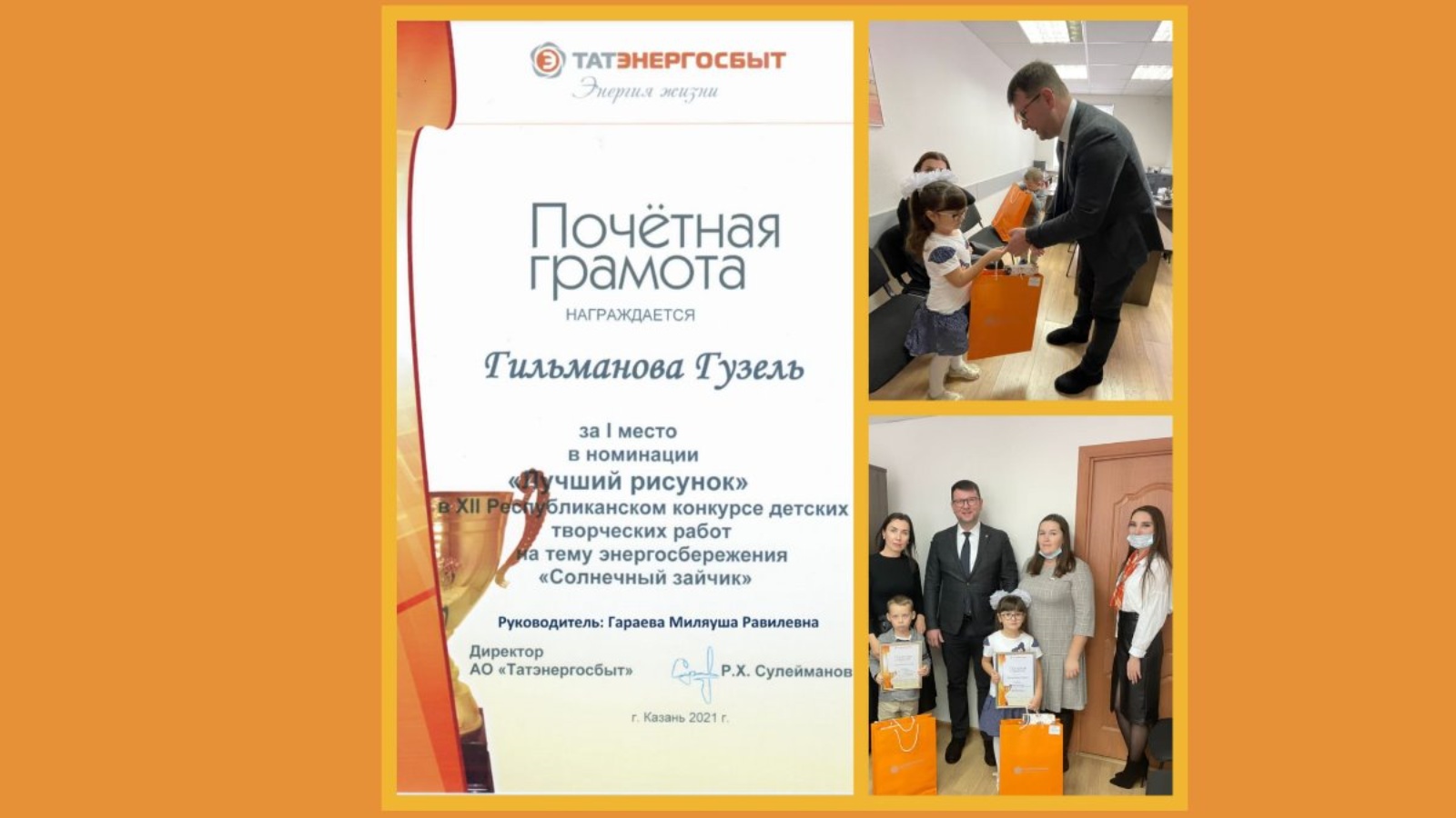 25 нче ноябрь көнне "Кояшлы куян" дип исемләнгән энергияне сак тоту темасына багышланган республикакүләм үткәрелгән конкурста җиңүчеләрне бүләкләү булды. Бу конкурста Җәлил бистәсенең 6 нчы санлы "Теремкәй" балалар бакчасында тәрбияләнүче Гыйльманова Гүзәл җиңүче булды. Гүзәлне котлыйбыз һәм алга таба да уңышлар телибез!