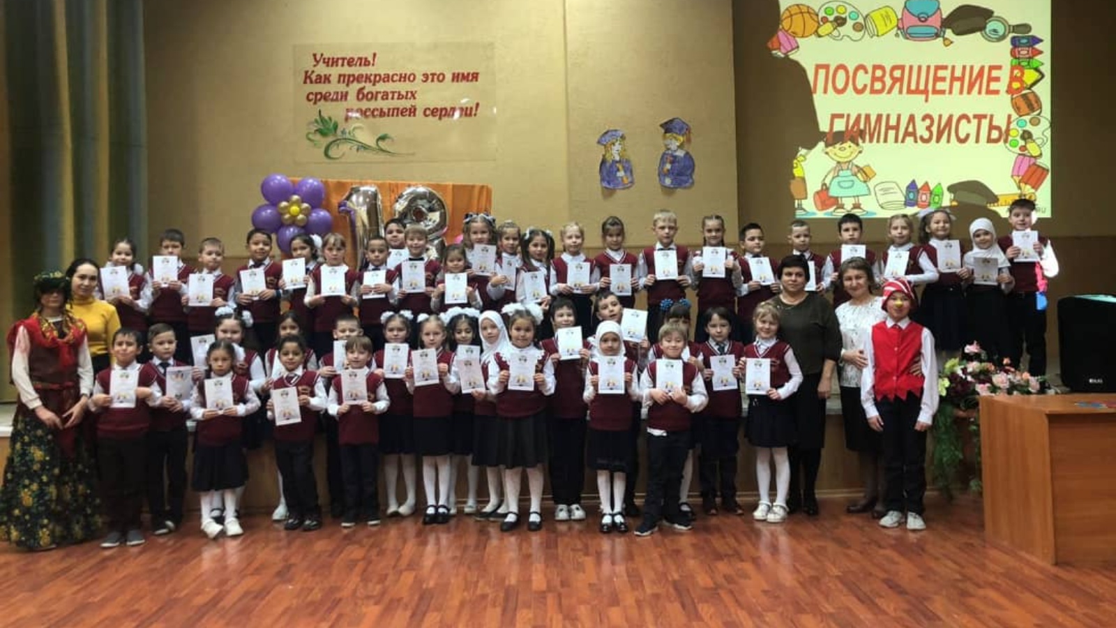26нче ноябрь көнне "Җәлил гимназиясе" нең туган көне уңаеннан актлар залында һәр беренче сыйныф укучысы өчен иң мөһим вакыйгаларның берсе - гимназиягә багышлау булып узды. Гимназиягә багышлау тантанасы тантаналы шартларда узды. Балалар янына әкият геройлары Буратино һәм Баба-Яга килде. Беренче сыйныф укучылары шигырьләр сөйләделәр, җырлар башкардылар, үзләренең барлык талантларын күрсәттеләр һәм сынаулар уздылар. Гимназистлар һәрвакыт гадел һәм гадел булырга, белемнәрне үзләштерергә һәм гимназистның данын беркайчан да яшермәскә вәгъдә бирделәр. "Яңа хәрәкәт" мәктәп укучылары үзидарәсе активистлары балаларга сертификатлар тапшырдылар.