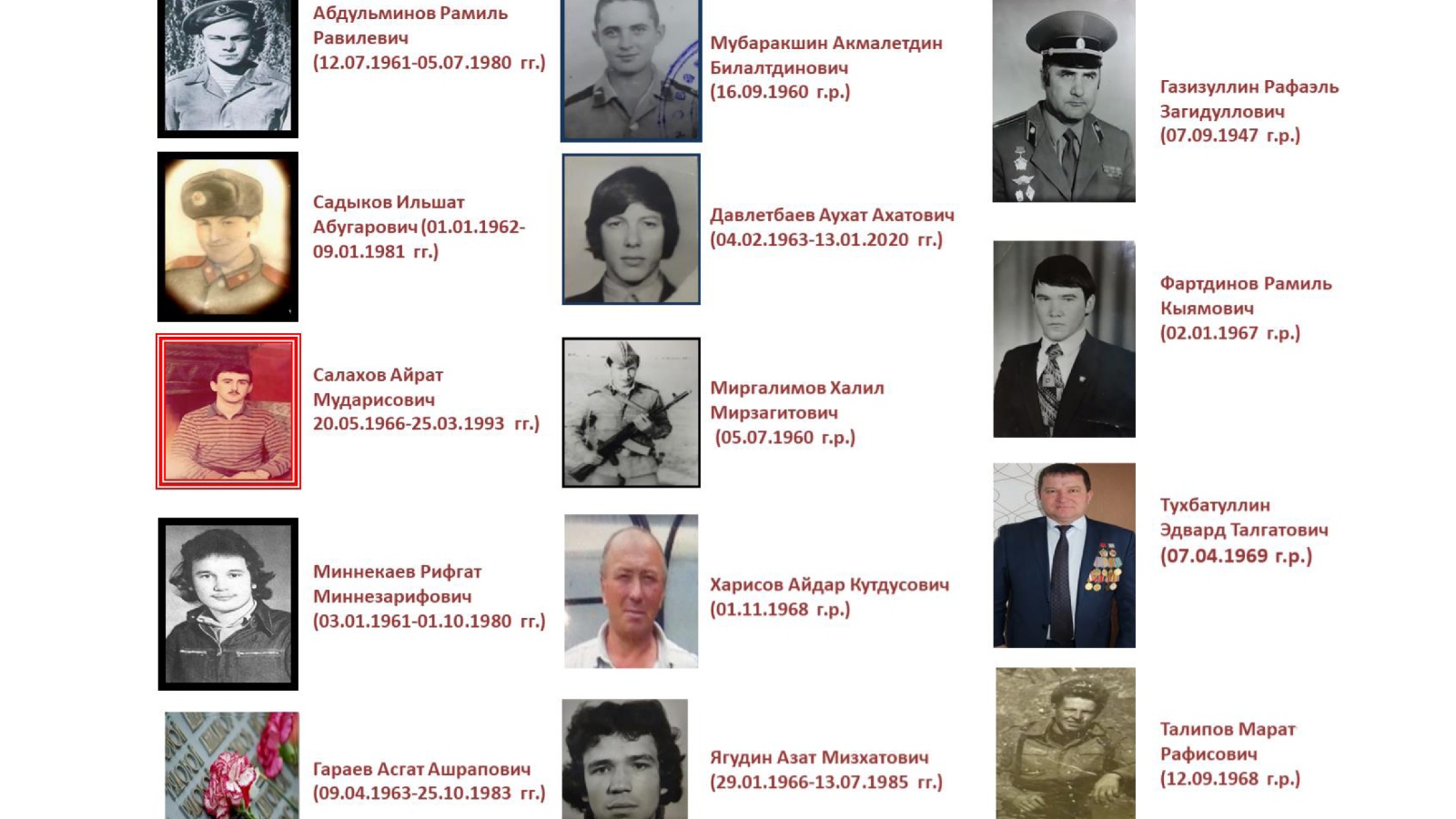 15 нче февраль - Совет гаскәрләренең Әфганистан территориясеннән чыккан көне. Бу сугышта безнең районнан 151 яшь егет катнаша. Шуның 7 се Әфганистан җирендә үлеп кала. Бу конфликтта катнашу буенча төрле каршылыклы фикерләр яшәп килә. Ләкин, ничек кенә булмасын, сугыш- кайгы, күз яше һәм абыйларабыз, әтиләребез, улларыбыз мәңге кайтарып ала алмаслык югалту ачысы.