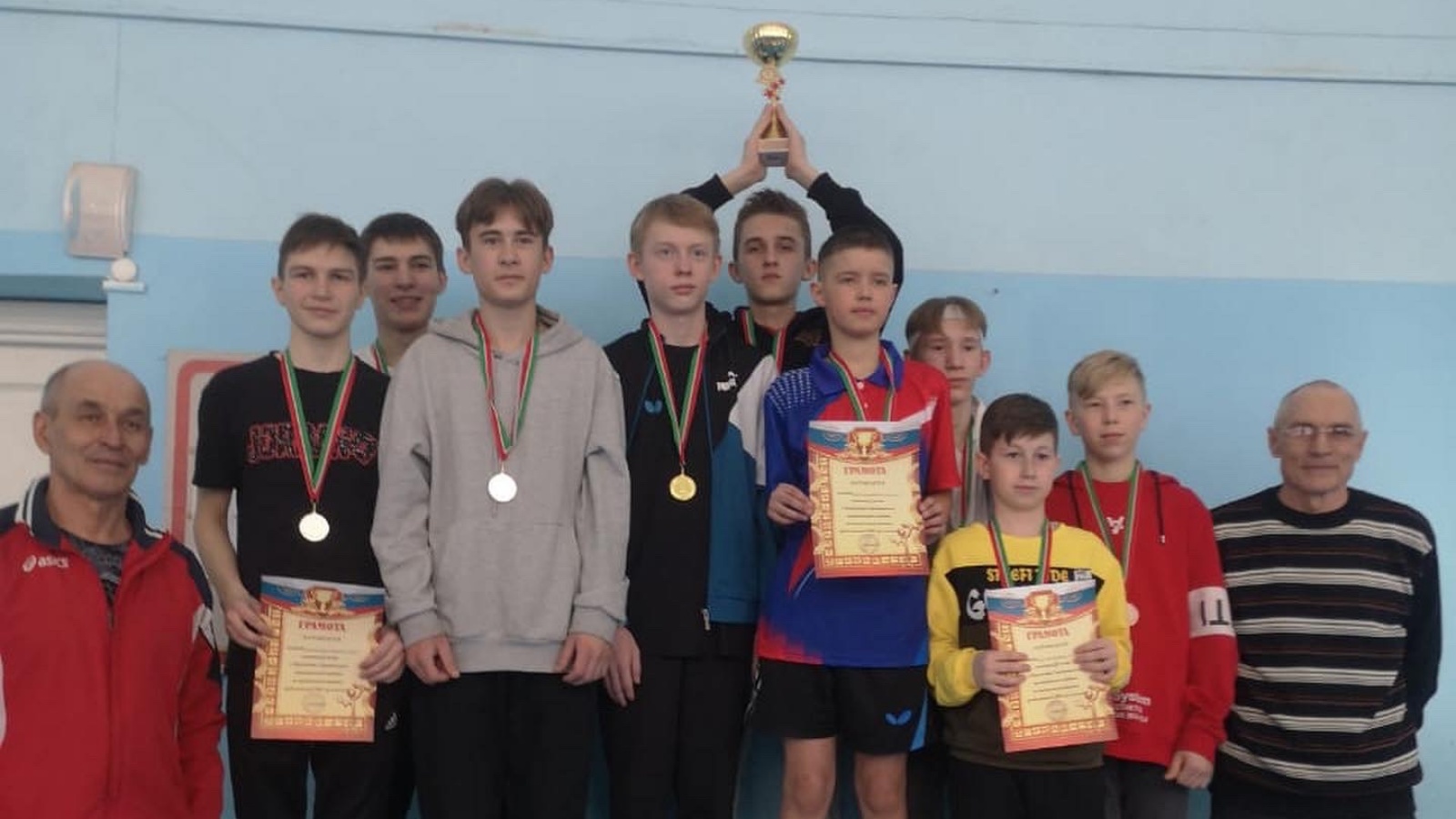 Сарман гимназиясендә 2004 елда туган һәм аннан да яшьрәк егетләр арасында өстәл теннисы буенча ярышлар узды. 9 нчы сыйныф укучылары Әһелтдинов Дамир, Габделгазизов Илзат, 4 нче сыйныф укучысы Ризатдинов Кәрим ярышларда катнаштылар һәм 1 нче урынны яуладылар.